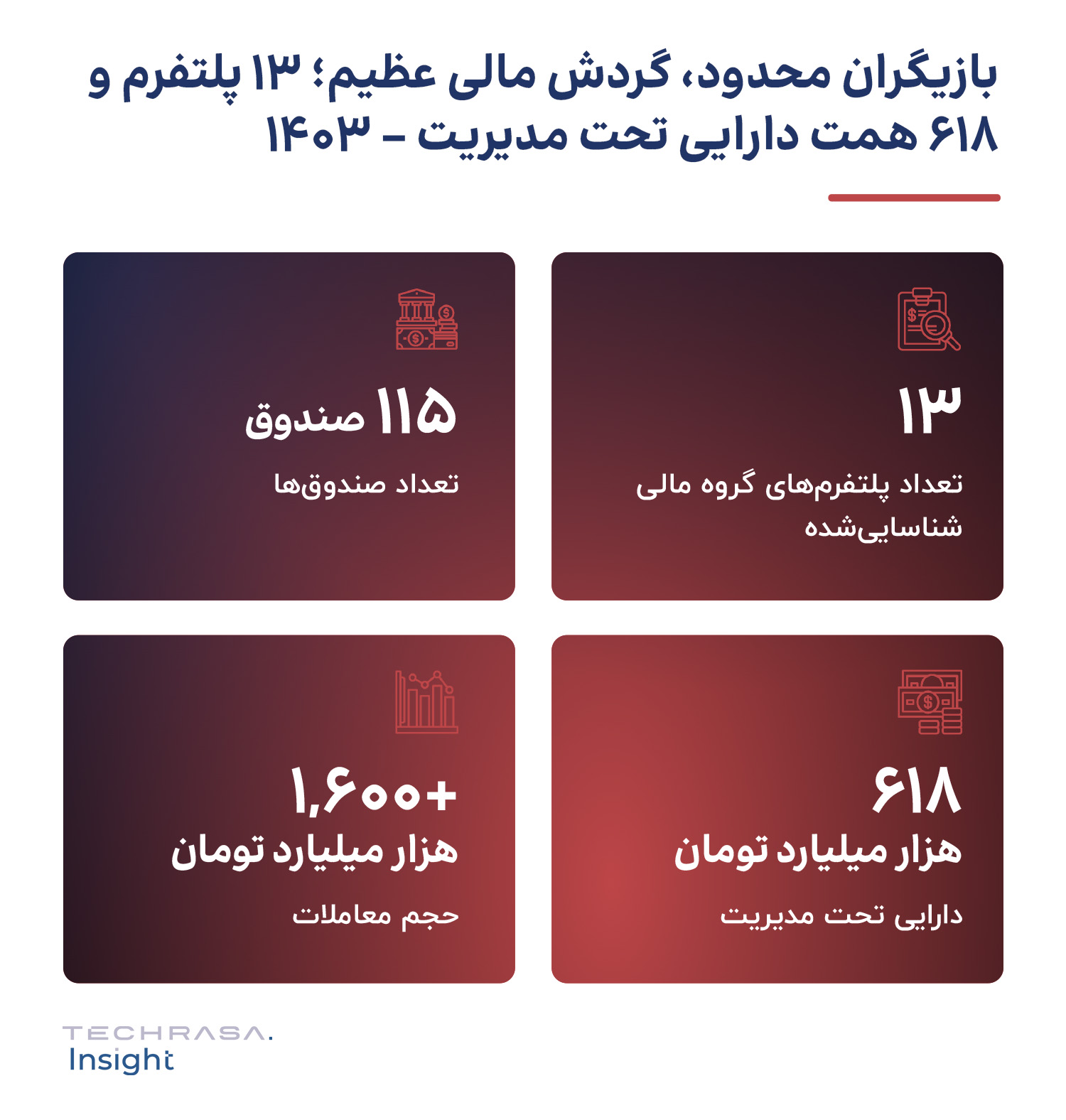 تکراسا اینسایت به‌عنوان یک کسب‌وکار اجتماعی، با هدف رفع کمبود داده‌ و اینسایت قابل دسترس در اقتصاد دیجیتال ایران، گزارش‌های جامعی را منتشر می‌کند. «سلسله گزارش‌های فین‌تک ایران ۱۴۰۴» که توسط تکراسا اینسایت در دی‌ماه ۱۴۰۴ رونمایی شد، تلاش دارد تا تصویری جامع از وضعیت تکنولوژی‌های مالی در ایران ارائه دهد. می‌توانید تکراسا اینسایت را از طریق شبکه‌های اجتماعی زیر دنبال کنید: