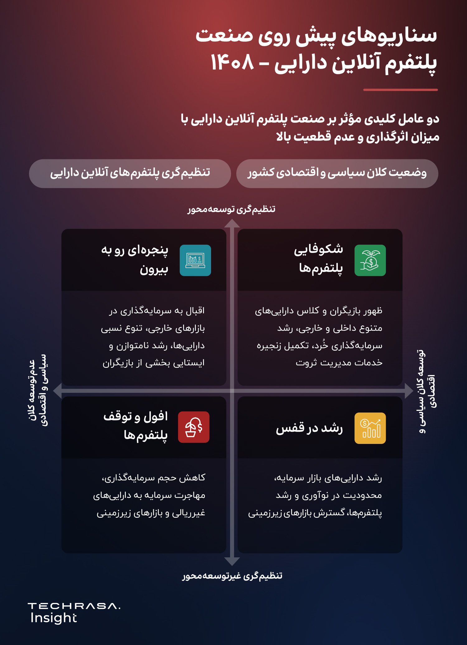 آینده صنعت پلتفرم آنلاین دارایی؛ دو متغیر کلیدی وضعیت کشور و تنظیم‌گری پلتفرم‌ها در افق ۱۴۰۸