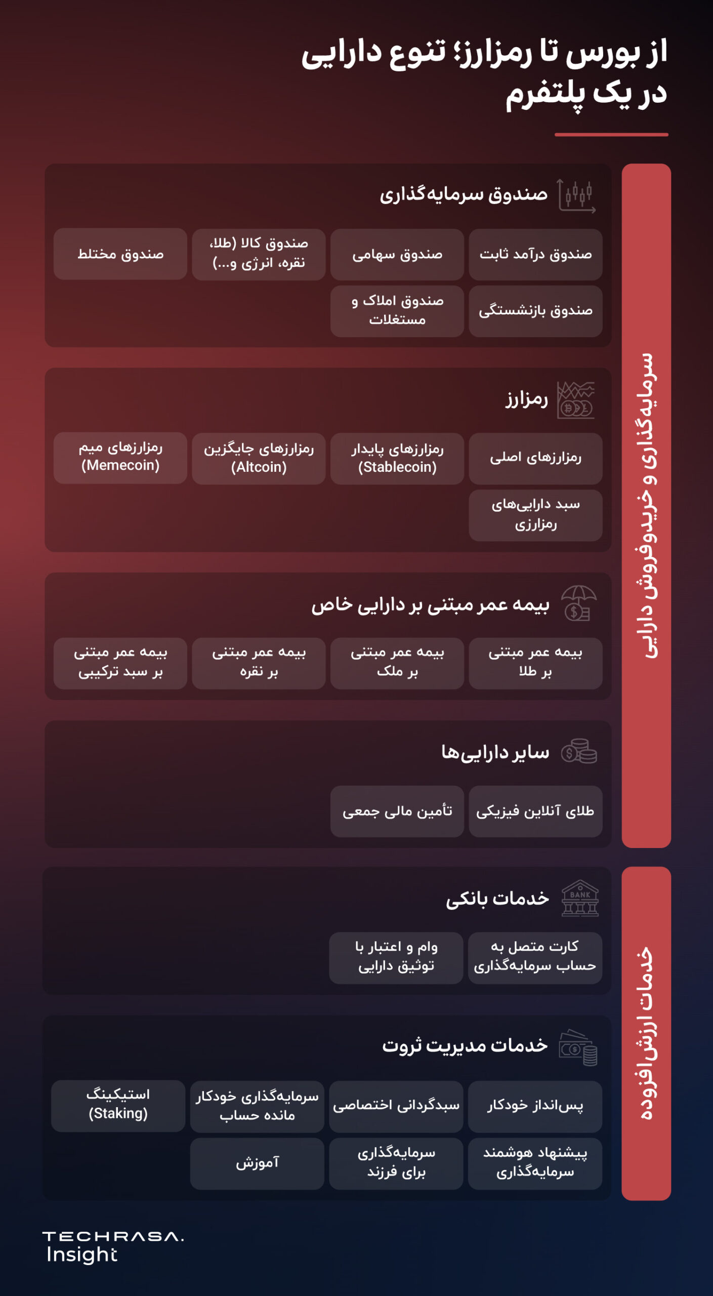 • خدمات پایه: سرمایه‌گذاری و خریدوفروش دارایی‌ها