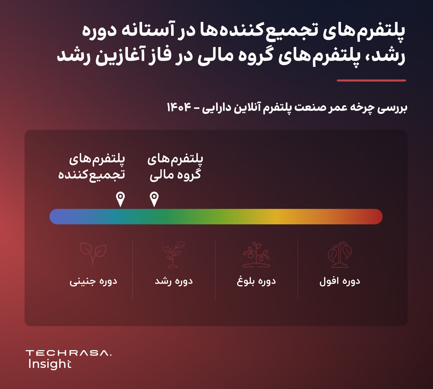 صنعت پلتفرم‌های آنلاین دارایی در ایران در حال گذر از دوره جنینی به دوره رشد است. در حال حاضر، کمتر از ۱۰٪ از ۴۵ میلیون جامعه هدف بالقوه به این پلتفرم‌ها دسترسی دارند و از آن‌ها استفاده می‌کنند. رقابت در این مرحله هنوز شدت زیادی ندارد و تمرکز اصلی پلتفرم‌ها بر ایجاد اعتماد و تجربه کاربری ساده برای جذب سرمایه‌گذاران است. در این مرحله، پلتفرم‌ها در حال رقابت با بازارهای جایگزینی چون سپرده‌های بانکی، ارز، خودرو و طلا هستند.